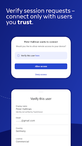 Connections are protected with 256-bit AES encryption, and you must explicitly grant permission to access your device, ensuring your data remains private.