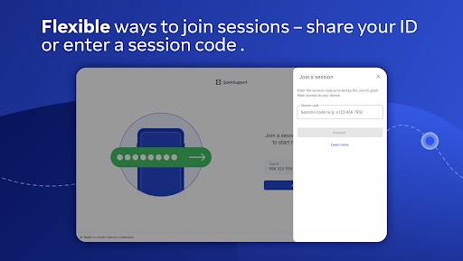 Download and open the app, then share your ID or session code with your technician. They will initiate the session, and you can accept the connection for support.