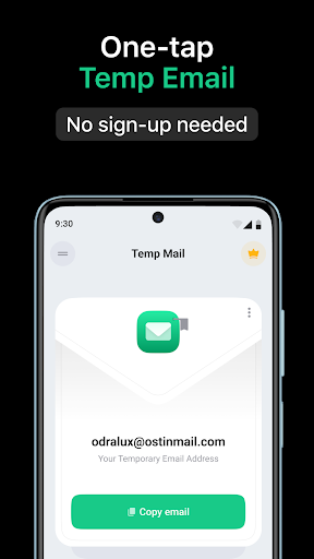 Open the Temp Mail app, and it will automatically create a disposable email address for you; no registration needed.
