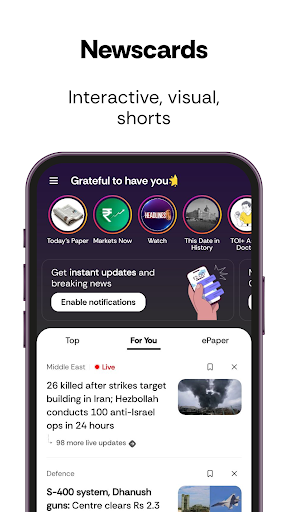 Explore comprehensive news coverage, real-time updates, personalized feeds, daily ePaper, visual stories, podcasts, and interactive quizzes within the app.
