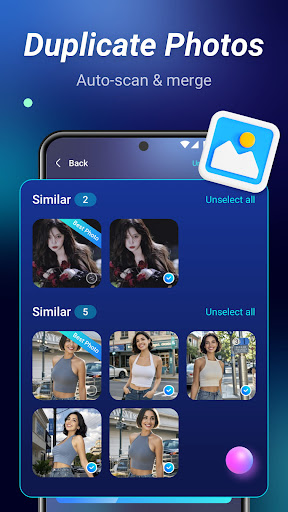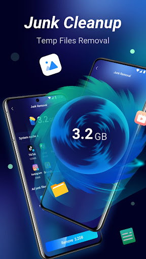 It scans and deletes unnecessary files, clears cache, and identifies duplicate media, helping your device run smoother and quicker.