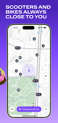 Open the app, view the map to see nearby scooters and bikes, and select your preferred vehicle to start your ride easily.
