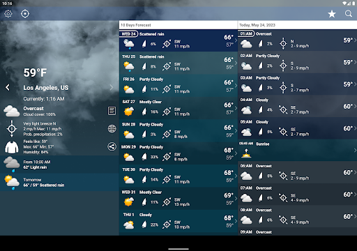 2. Extensive Temporal & Spatial Range: The app provides detailed forecasts extending from hourly to weekly views, along with hyper-local data that caters to specific neighborhoods or even outdoor spots, making it highly adaptable for various needs.