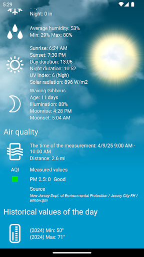 Includes UV index, air quality, and precipitation probability, enriching the weather context.