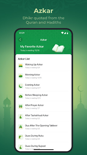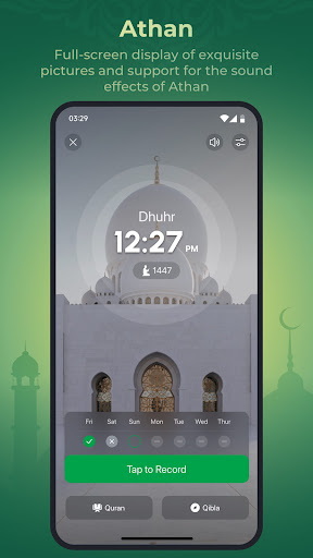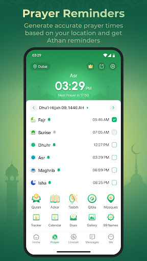 - Customizable notifications to alert users for prayer times and Quran recitation reminders