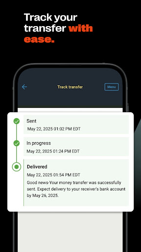 Use the app's live tracking feature to monitor your transfer, and receive instant notifications once your money is dispatched or received.