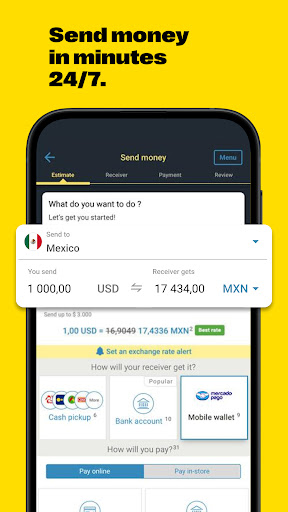 Created by Western Union, a global leader with over 150 years of experience in remittance and financial services, this app leverages its extensive network and expertise to deliver efficient payment solutions directly to your mobile device.