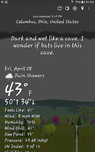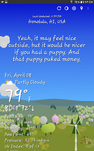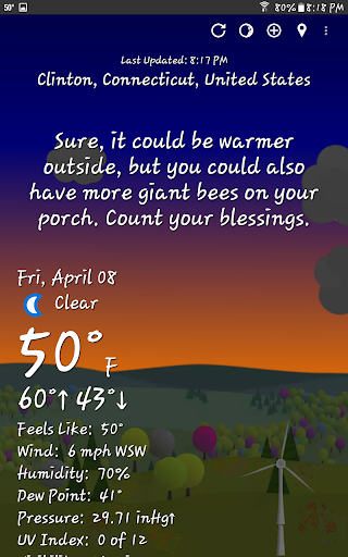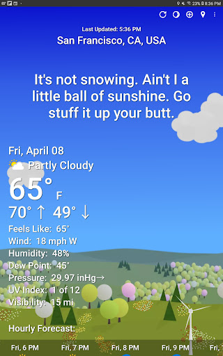 The app uses over 9,607 snarky phrases to describe weather conditions, which you can customize or turn off in Settings.