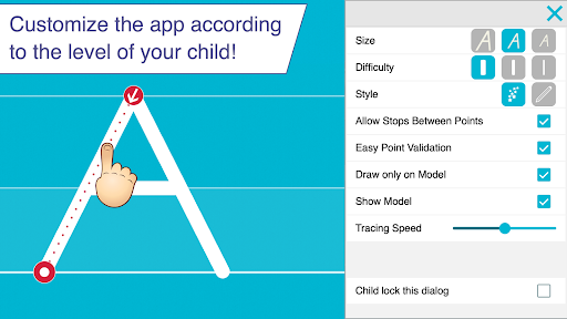 Download the app, open it, choose the beginner level, and follow the guided tracing instructions to help your child start learning letters easily.