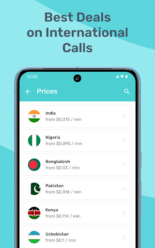 Rates start as low as $0.004 per minute with transparent pricing. Check the specific rate before calling in the app's call screen.