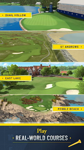 Play on iconic courses like Pebble Beach and St Andrews, which are unlocked as you progress; access them from the main menu's course selection.
