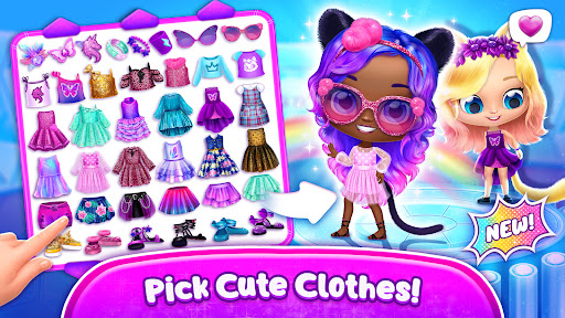 Go to your collection, select a girl, then choose from trendy clothes and accessories in the dress-up section.
