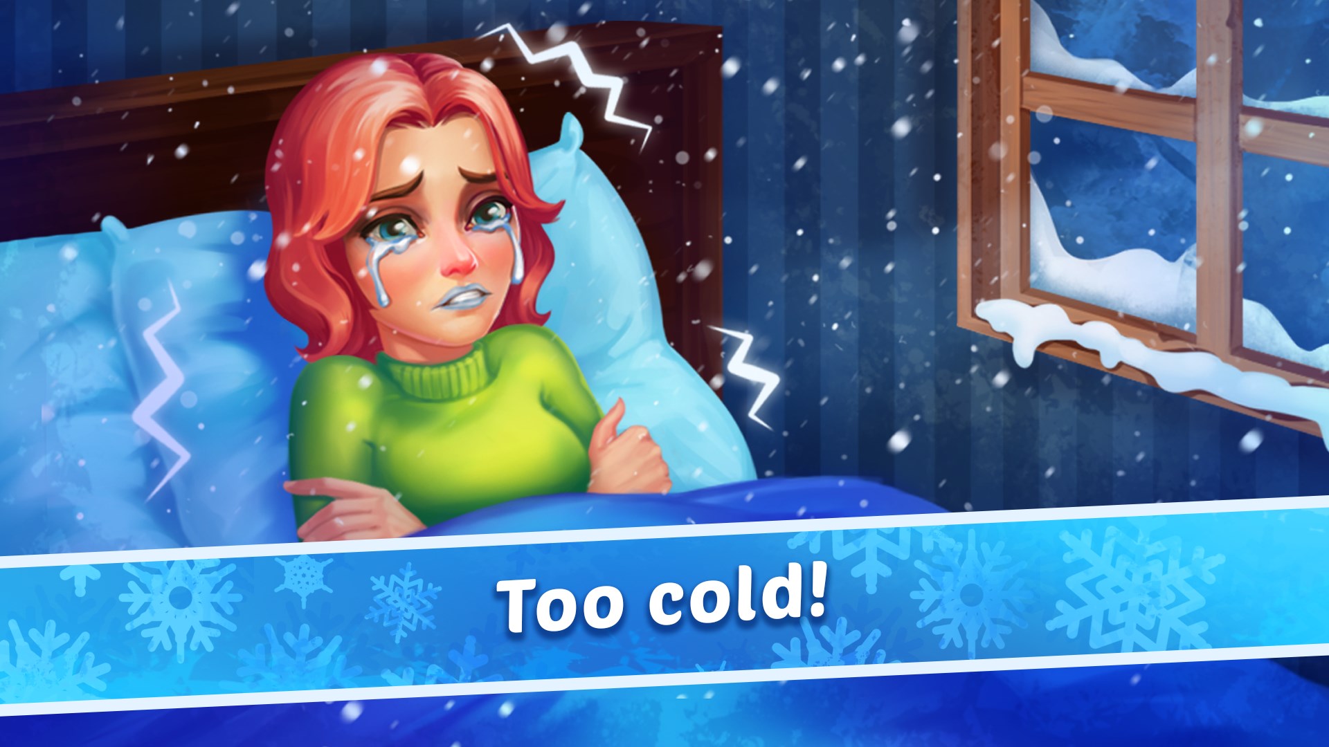 The icy visuals and calming color palette create an immersive winter atmosphere.