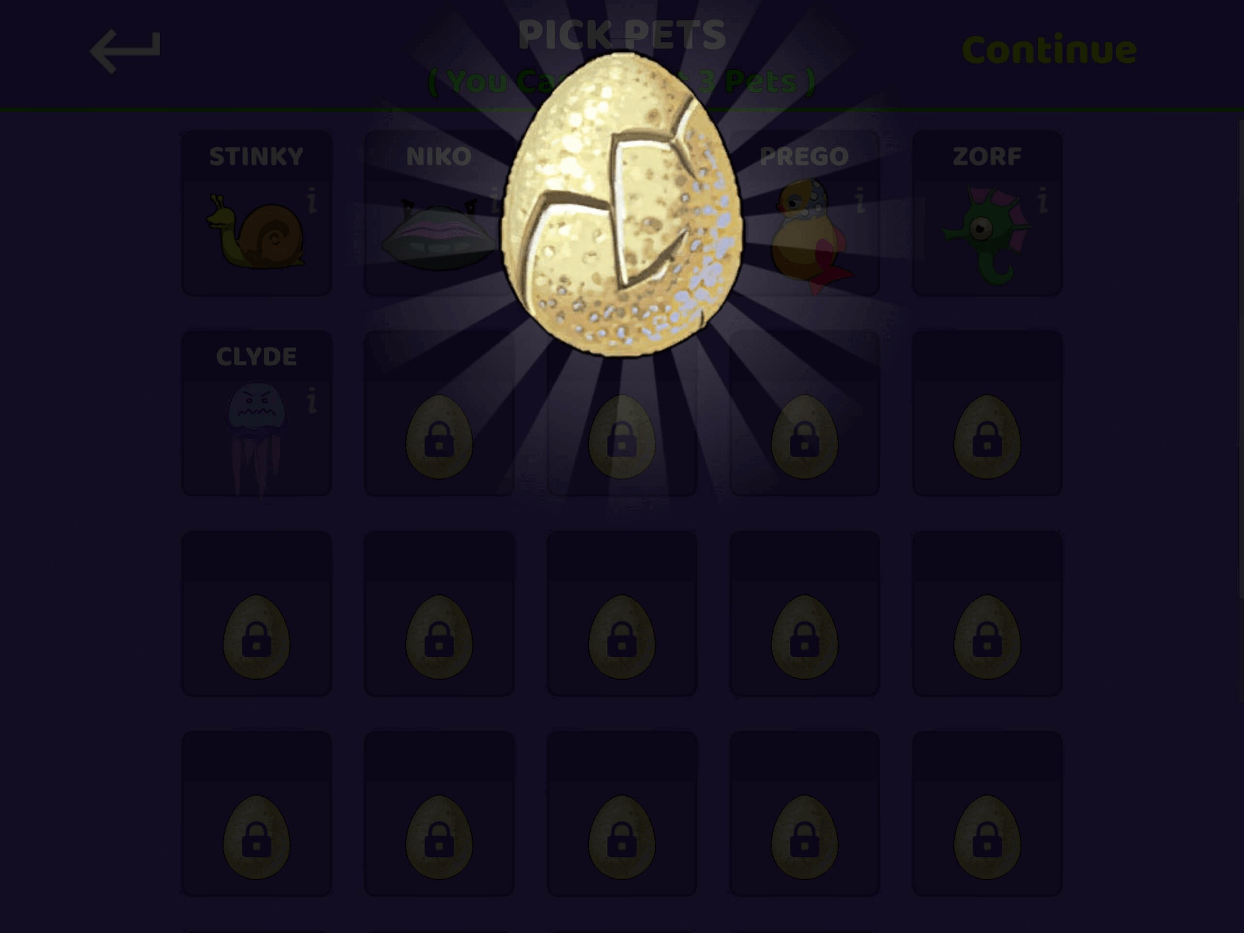Complete Adventure mode levels to collect egg pieces, purchase eggs three times to hatch, and select up to 3 or 4 pets as your allies.