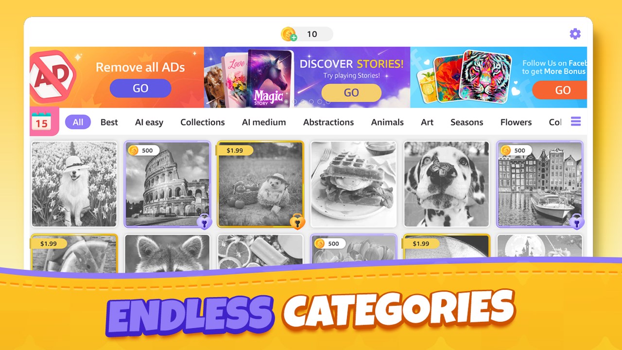 New free images are available on the home screen or gallery section, just browse and select any to start coloring.