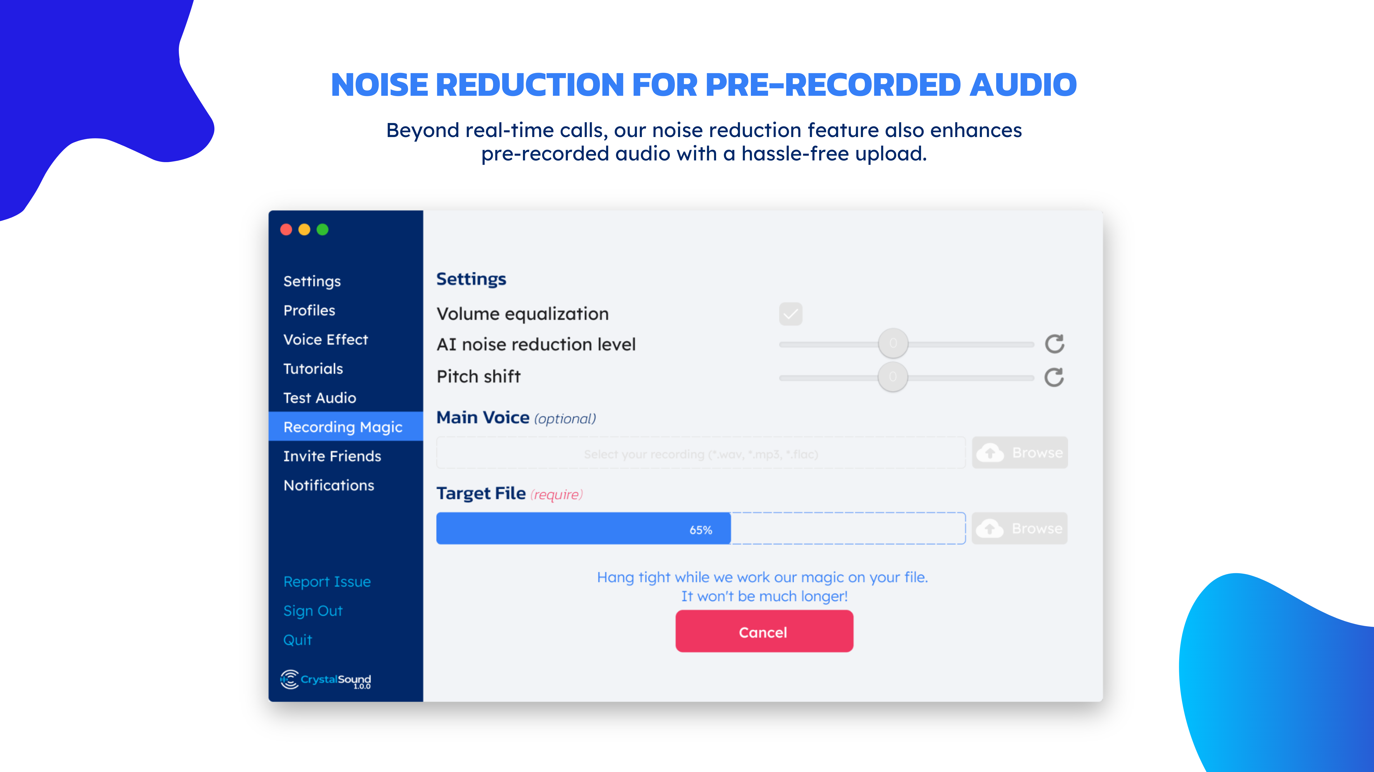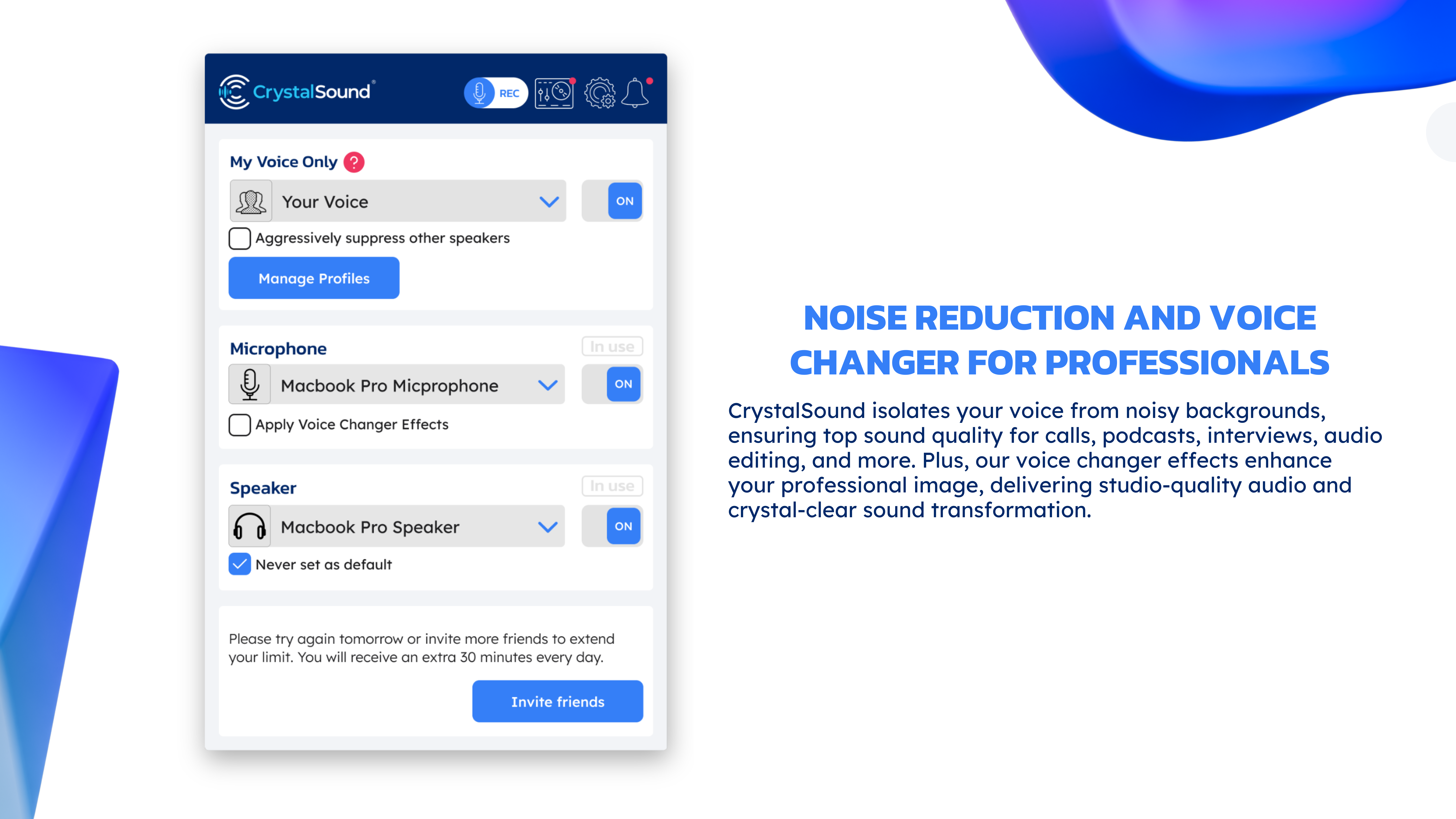 CrystalSound offers noise removal, voice enhancement, screen recording, real-time translation, and call analytics to enhance your communication.