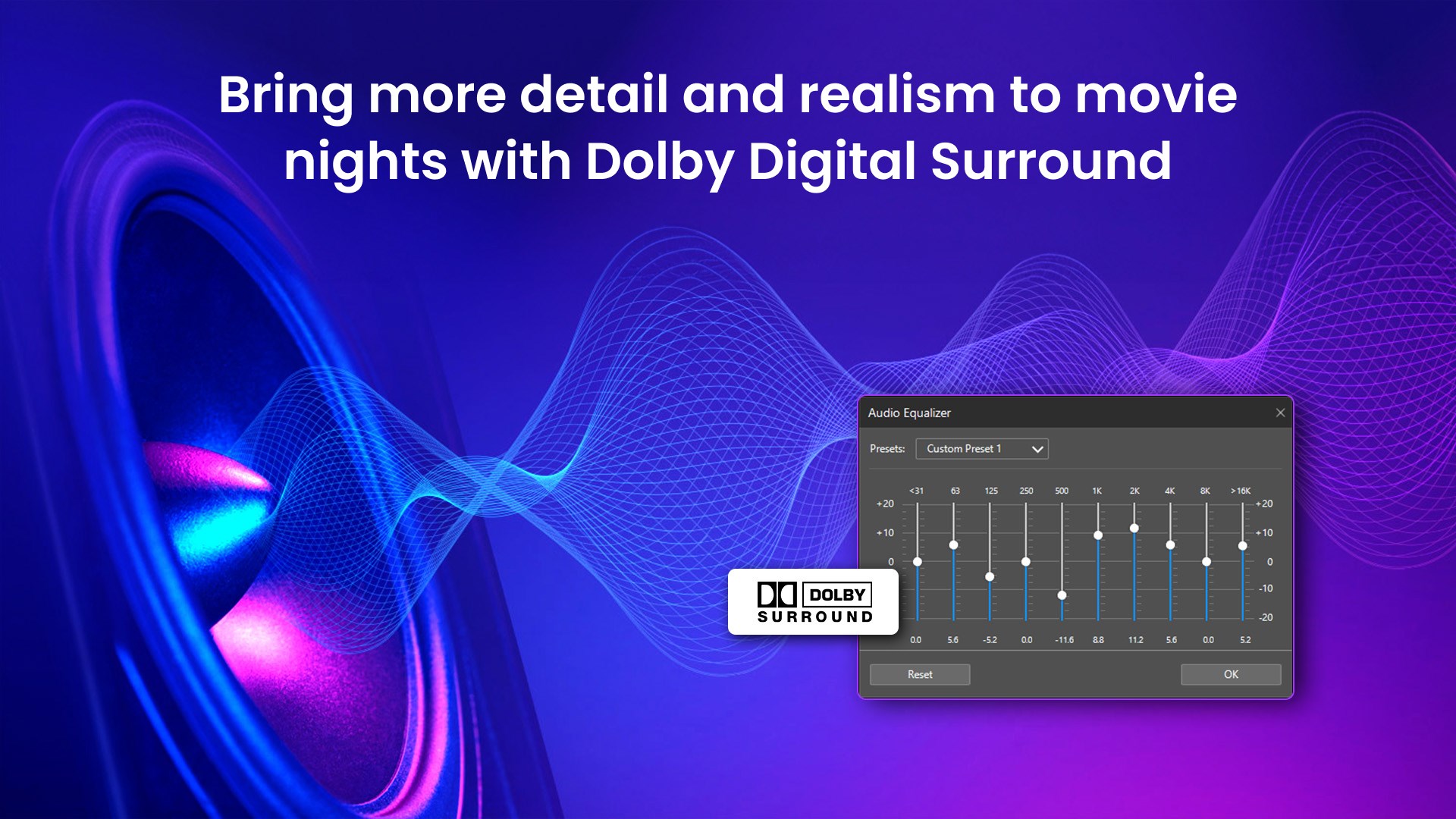 Includes Dolby Atmos and DTS:X support, ensuring high-fidelity sound quality.