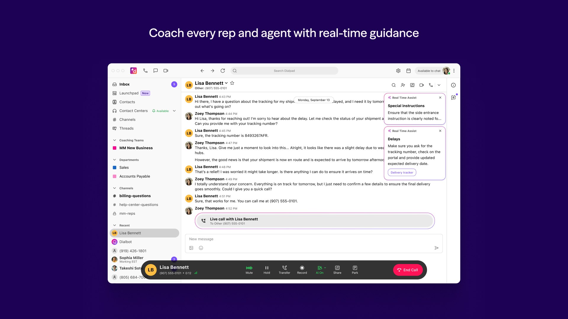 Dialpad supports calls, messaging, contact management with rich profiles, automatic call transcription, and call coaching for better collaboration.