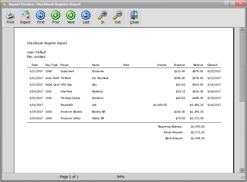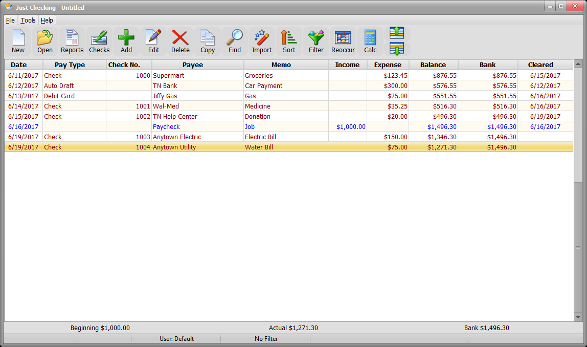 Enter your transactions, mark checked ones as cleared, then use the 'Reconcile' feature under the checkbook menu to compare balances.
