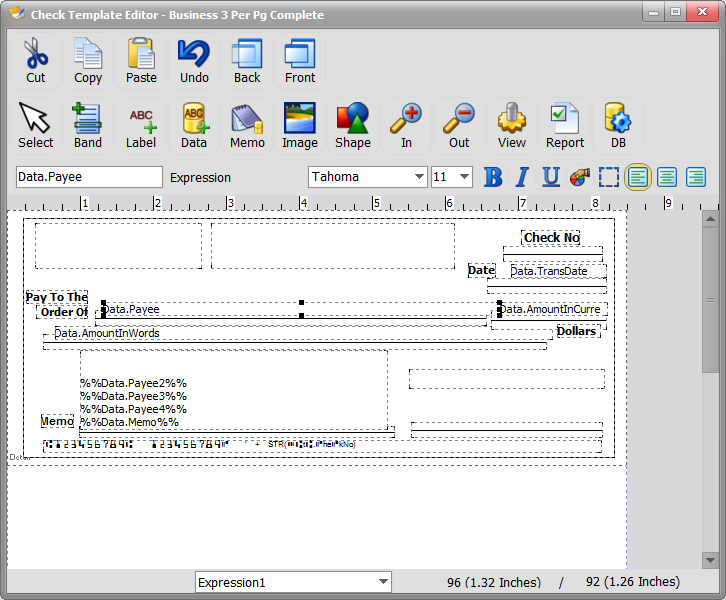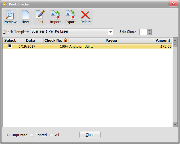 Use the built-in check templates, customize if needed, then select your checks and tap 'Print'. Access via Settings > Check Printing.