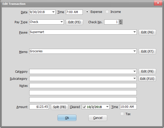 When adding or editing a transaction, select 'Split' to divide it into parts with different payees, memos, or categories.