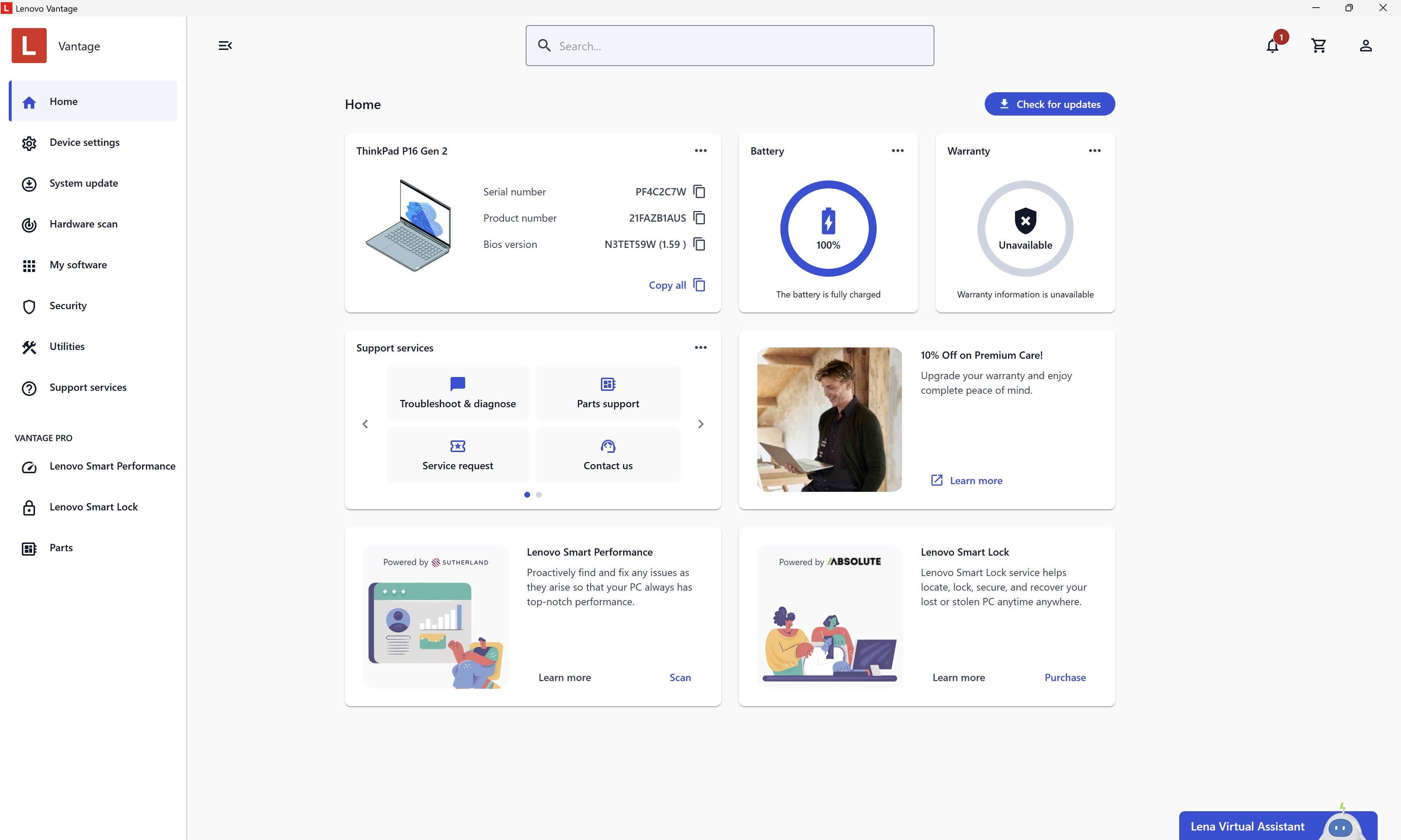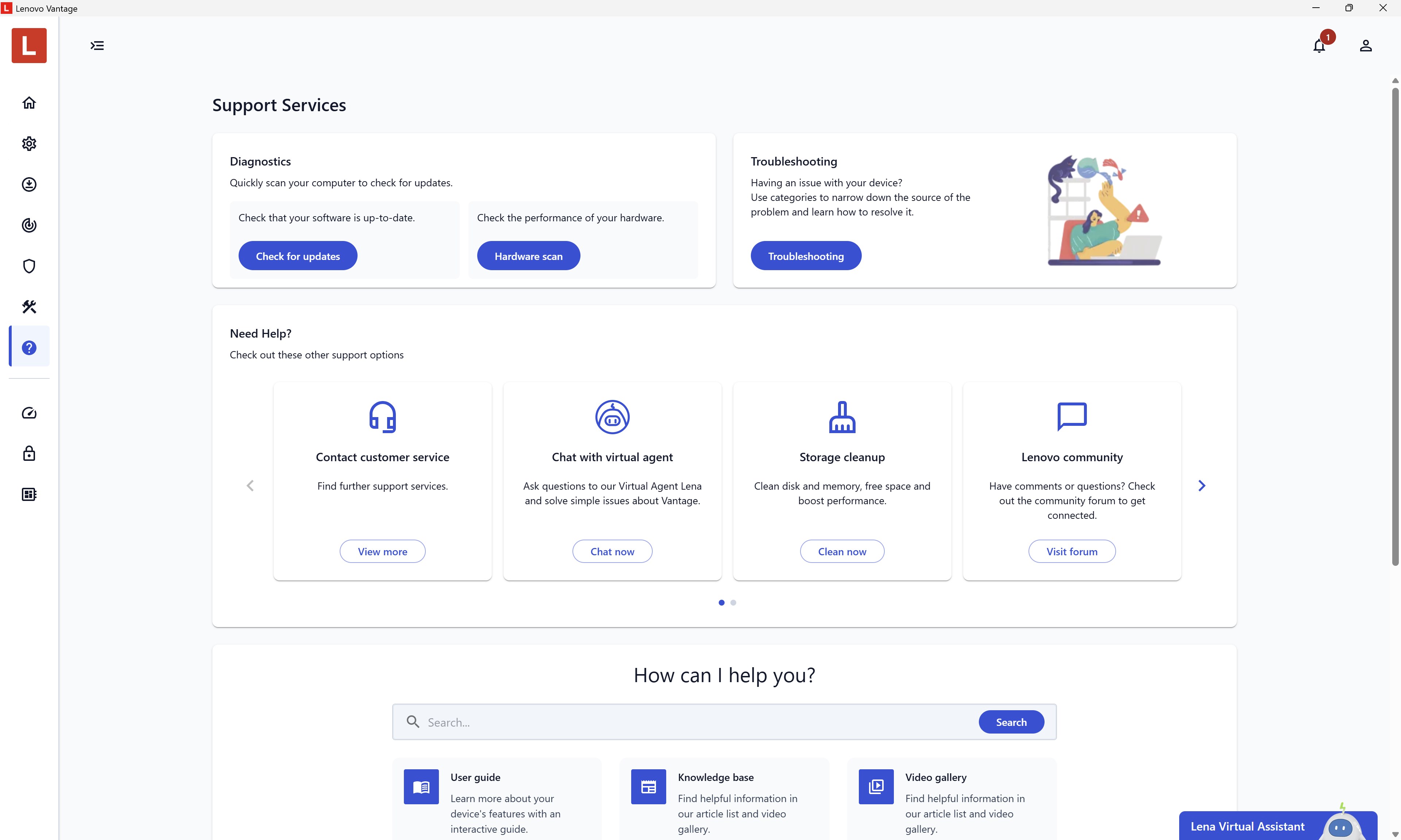 Lenovo Vantage offers tools to update drivers, improve performance, and manage power settings.