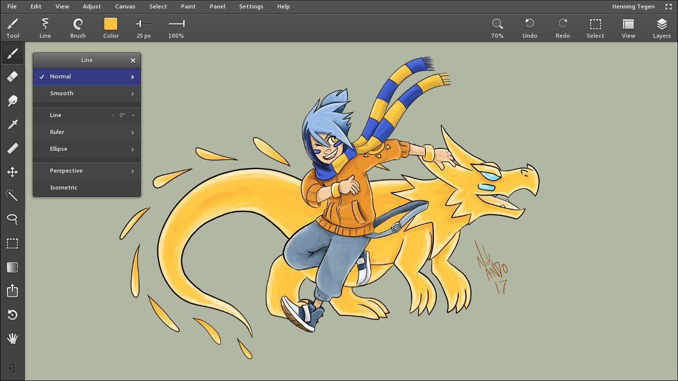 Leonardo offers various brushes for sketching, inking, and painting, selectable from the brush palette in the toolbar.