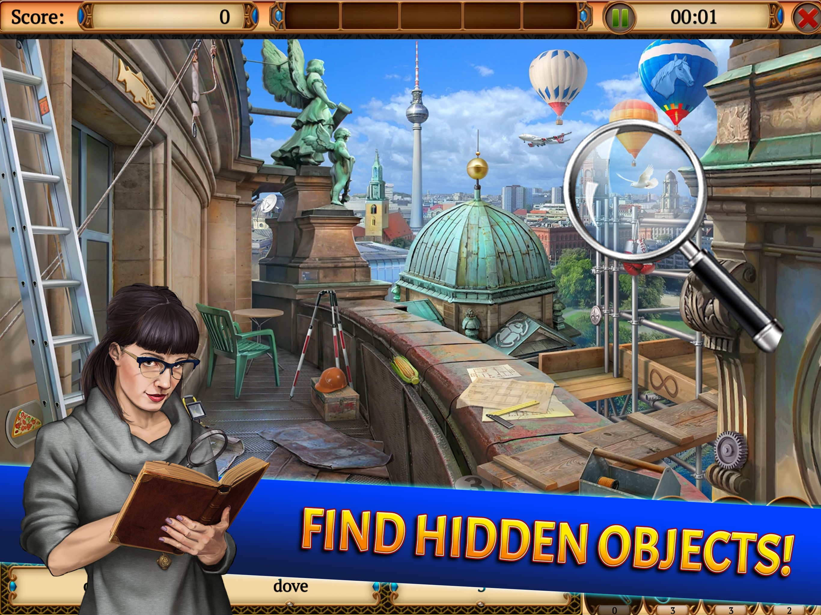 Explore city levels, find hidden objects, solve puzzles, decorate your office, unlock achievements, and participate in game modes like Find the Differences and Mirror Mode.