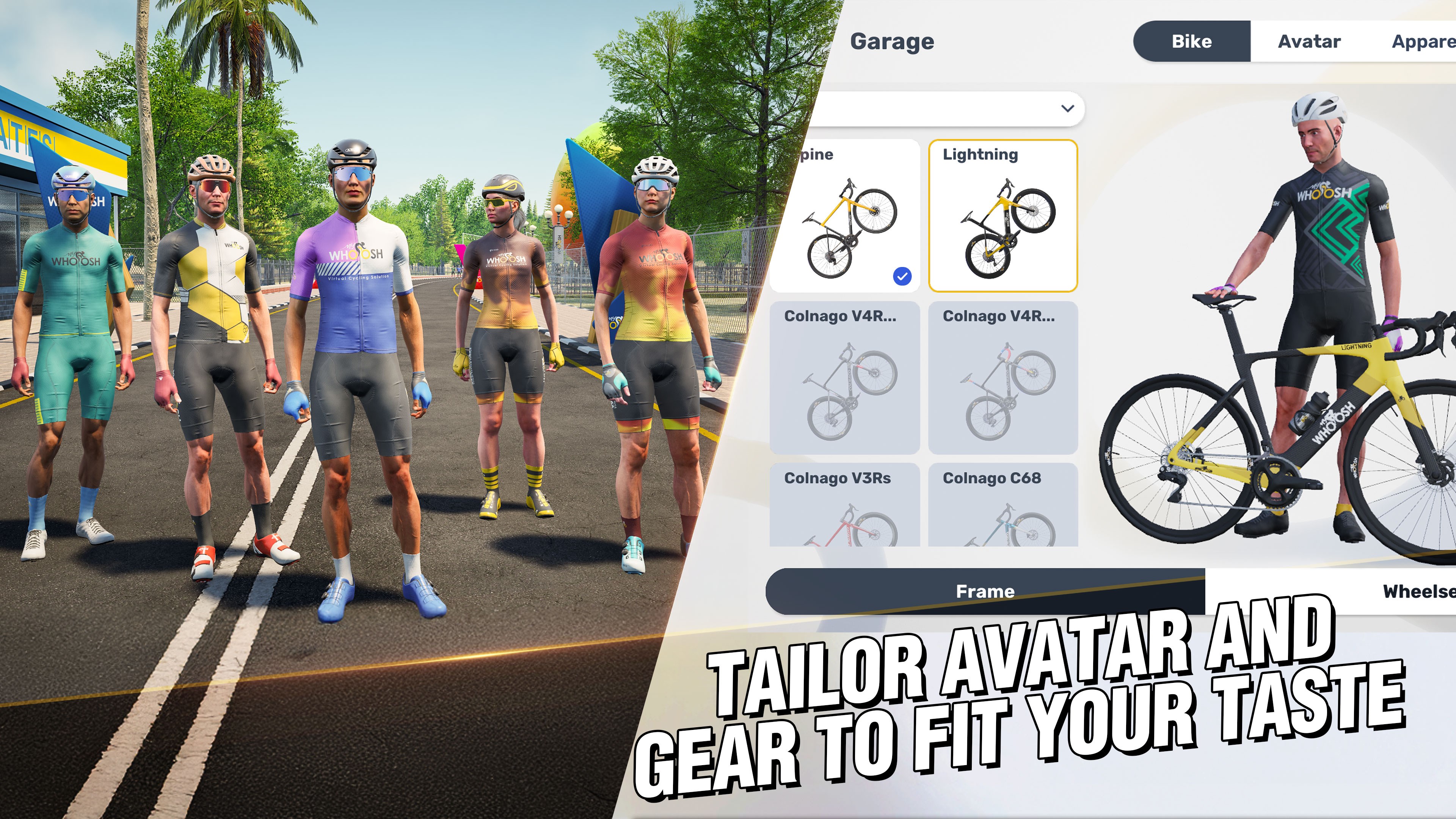 Yes, go to Garage > Customize to select your preferred bikes and accessories from popular brands like Colnago and Look.