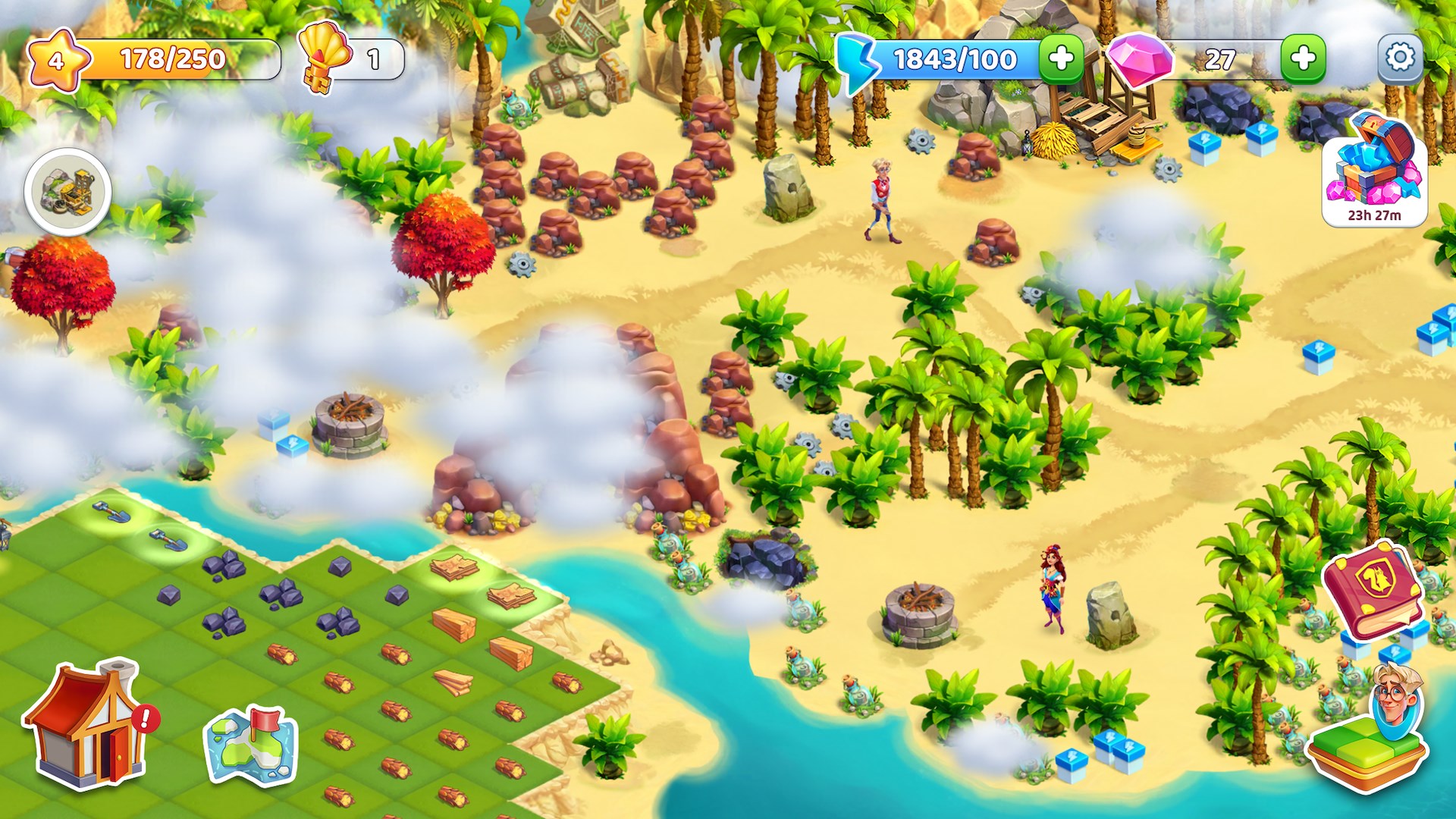 Complete puzzle quests and merge higher-level items to unlock and explore new lands in the game's map.
