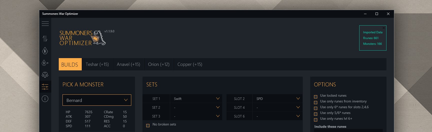- Name Summoners War Optimizer Pro