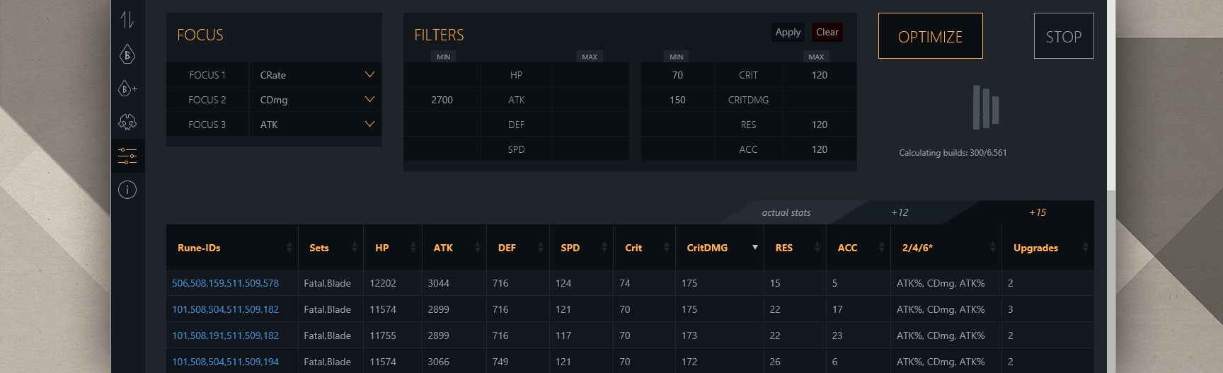 Yes, go to 'Settings > Optimization Preferences' to adjust parameters like desired stats, rune priorities, and efficiency for personalized builds.