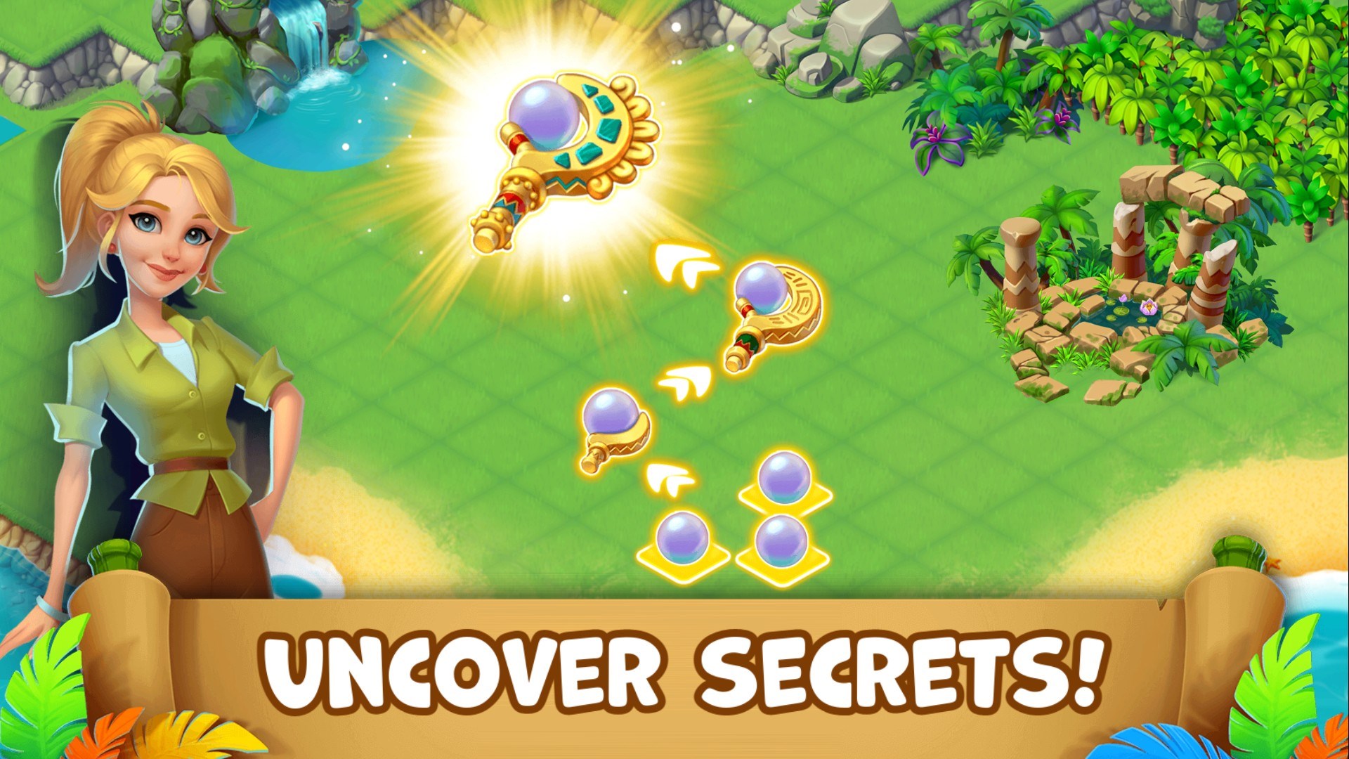 Download the app, complete the tutorial, and follow in-game instructions to begin building your tropical farm and exploring the island adventures.