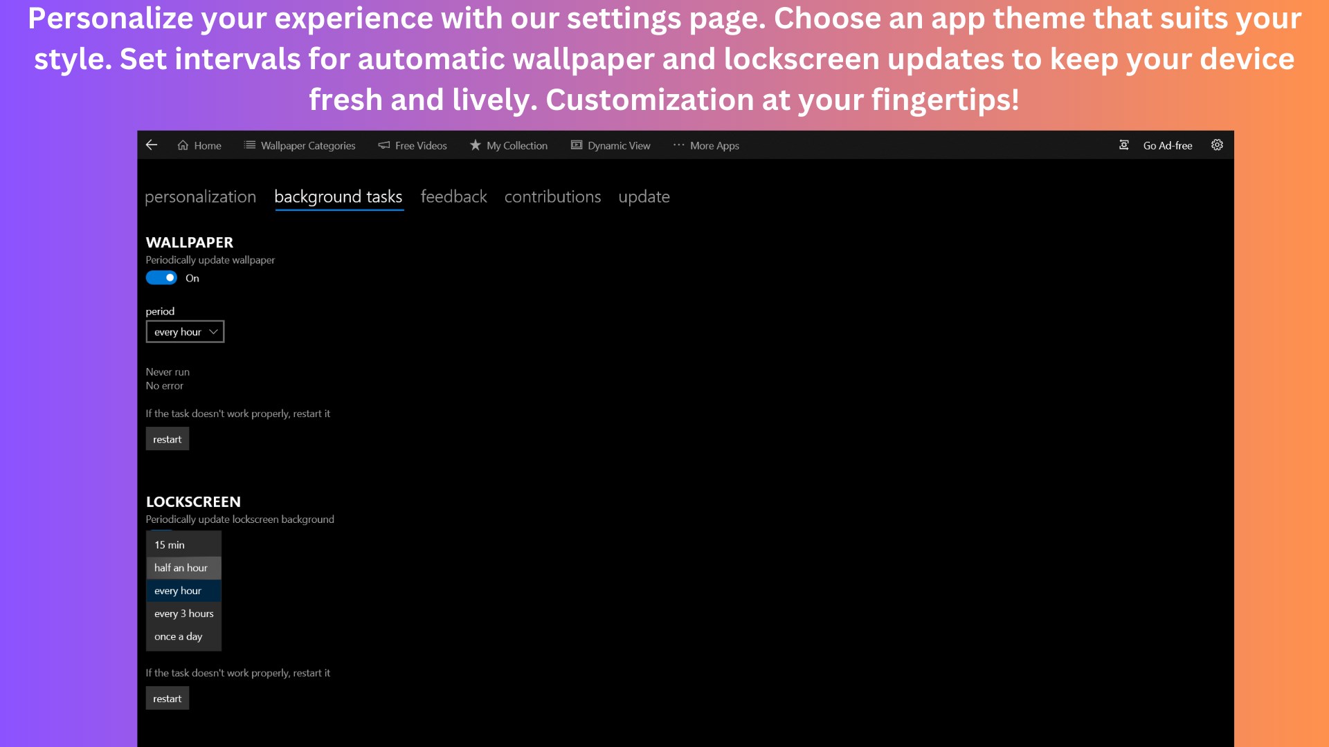 Few settings to modify wallpaper slideshow or rotation frequency; users may need third-party tools for advanced features.